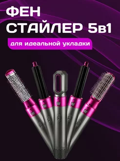 Фен стайлер брашинг для волос с насадками 5в1 розовый