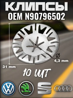 Клипсы прижимные для Ауди, Шкода, Сеат (VAG) 10 шт