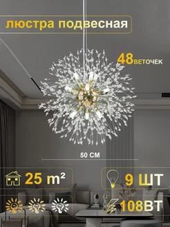 Люстра подвесная потолочная хрустальная одуванчик 48 шт