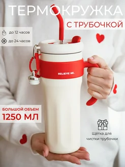 Термокружка с керамическим покрытием и трубочкой, 500 мл