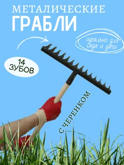 Грабли садовые металлические с черенком