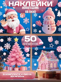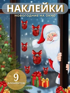 Новогодние наклейки на окна Новый год 2026 Дед мороз
