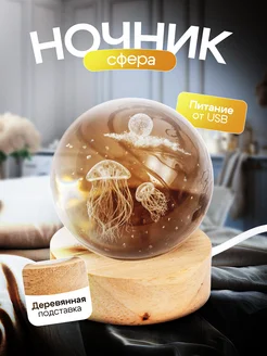 Ночник детский светодиодный стеклянный шар светильник Медуза