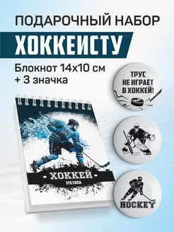Подарочный набор хоккеисту "Блокнот + 3 значка"