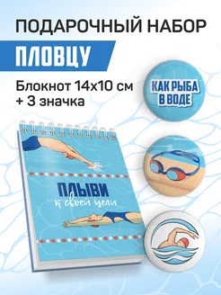 Подарочный набор пловцу "Блокнот + 3 значка"