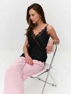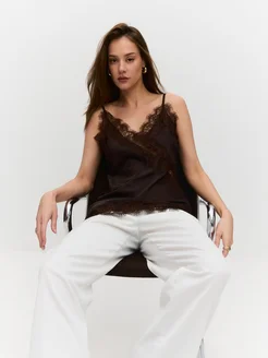Топ шелковый с кружевом в бельевом стиле асимметричный