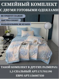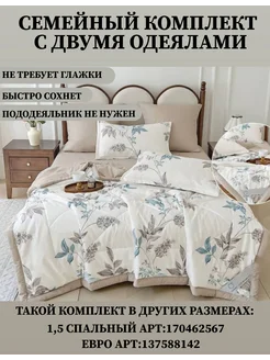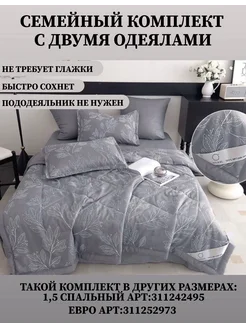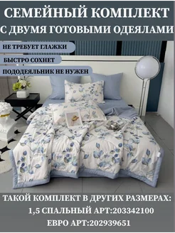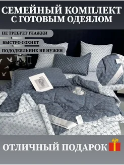 Постельное белье семейное сатин с одеялом