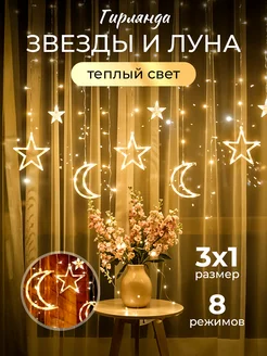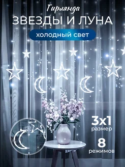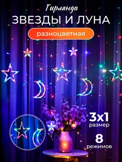 Гирлянда штора Звёзды и Луна
