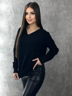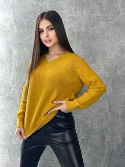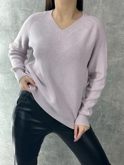 Свитер теплый вязаный с v-образным вырезом в оверсайз