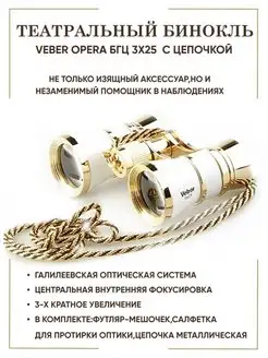 Бинокль театральный Opera БГЦ 3х25 D01, белый с цепочкой