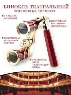 Бинокль театральный Opera БГЦ 3х25 Е08, красный лорнет