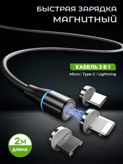 кабель type-c 3 в 1 для быстрой зарядки магнитный 2М