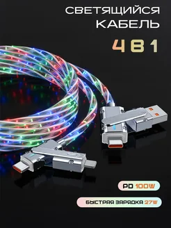 Кабель type-c usb 4 в 1 быстрая зарядка телефона светящийся
