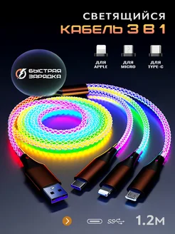 Кабель type-c 3 в 1 быстрая зарядка телефона светодиодный