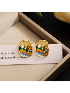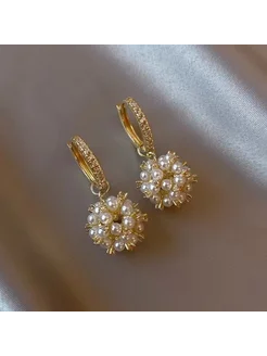 серьги винтажные с цветами и жемчугом