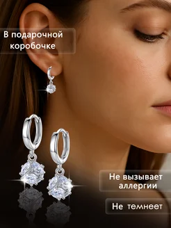 круглые серьги подвески с цирконом