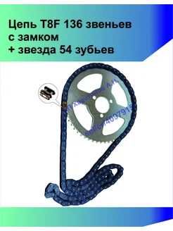 Цепь T8F 136 звеньев с замком + звезда 54 зубьев