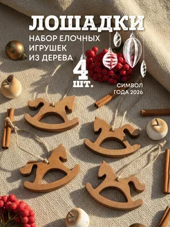Елочные игрушки из дерева Лошадки 4 шт