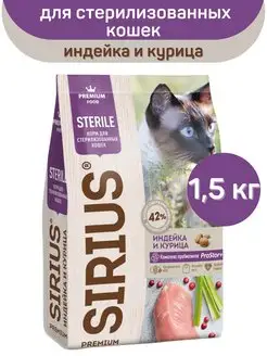 Сухой корм для стерилизованных кошек, с индейкой, 1,5кг