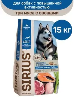 Корм сухой для активных собак, три мяса и овощи, 15 кг