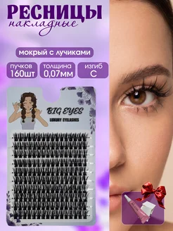 Накладные ресницы пучки с клеем 50D 11-16мм