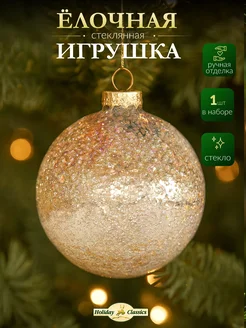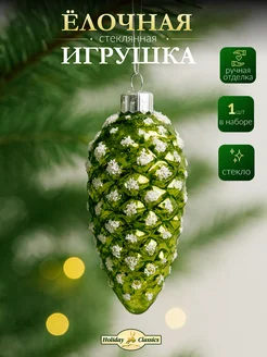 Новогодняя елочная игрушка Шишка заснеженная стекло