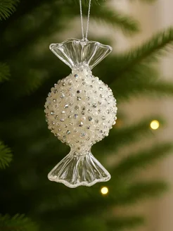Елочная новогодняя игрушка стекло на елку Снежок конфета