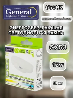 Лампочка светодиодная GX-53 General 12 ватт 6500к (10шт)