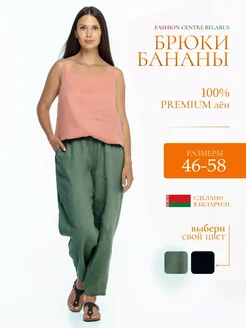 Брюки летние легкие на резинке бананы 100% лен РБ