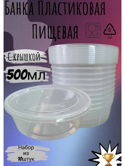 Банка пластиковая с крышкой 500 мл, 10 штук