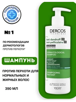 Dercos Шампунь для волос против перхоти и себореи, 390 мл