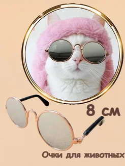 Очки для животных и игрушек 8 см зеркальные в золотой оправе