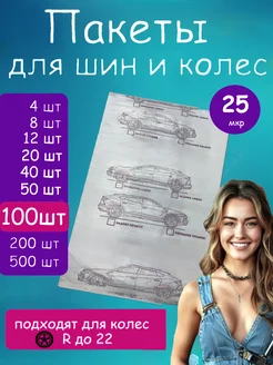 Плотные пакеты для колес и шин фиолетовый рисунок 100шт