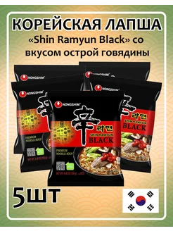 Корейская лапша с говядиной острая Shin Ramyun Black 5шт