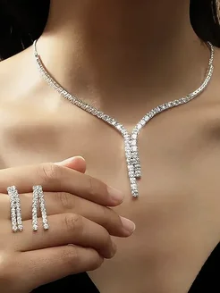 Вечерний комплект бижутерии цепочка серьги подвеска