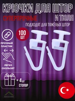 Крючки для штор к потолочным карнизам 100 шт прочные