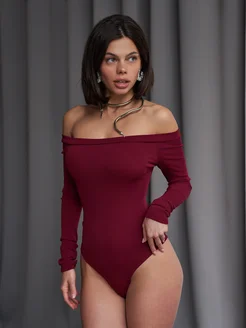 Боди с длинным рукавом и открытыми плечами skims