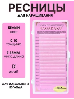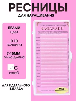 Белые цветные ресницы для наращивания 0.10 D Микс 7-15мм