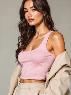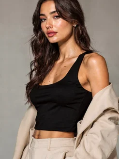 Кроп топ укороченный летний облегающая под пиджак хлопок