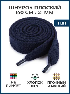 Шнурок для одежды плоский, 1шт, 140 см, темно-синий