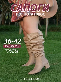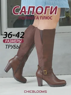 Сапоги с увеличенным обхватом голенища и с высоким каблуком