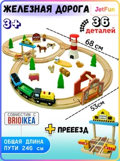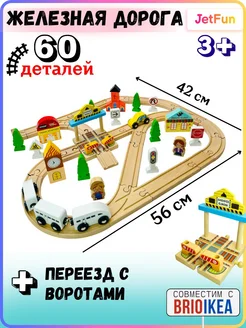 Деревянная железная дорога с поездом и переездом 60 деталей