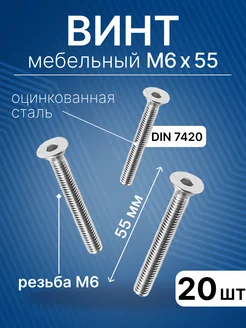 Винт мебельный с внутренним шестигранником М6х55 мм, 20 шт