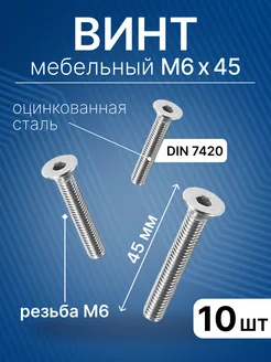 Винт мебельный с внутренним шестигранником М6х45 мм, 10 шт