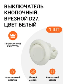 Выключатель кнопочный белый 1шт