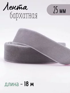 Лента бархатная 25 мм (18 м) серая
