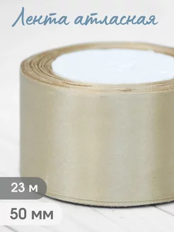 Лента атласная 50 мм (23 м) кремово-коричневая