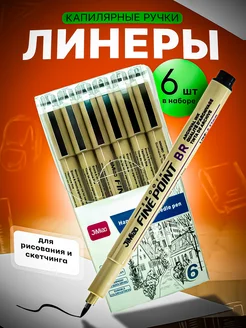 Набор капиллярных ручек - линеров 6 шт 0 05–0 8 мм