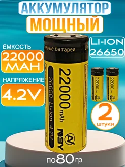 Аккумулятор батарейка 26650 для фонарика 4.2v мощный литиевы…