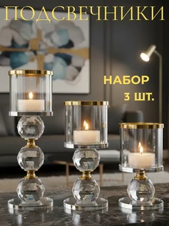 Подсвечники для свечей интерьерные золотые 3 шт стекло